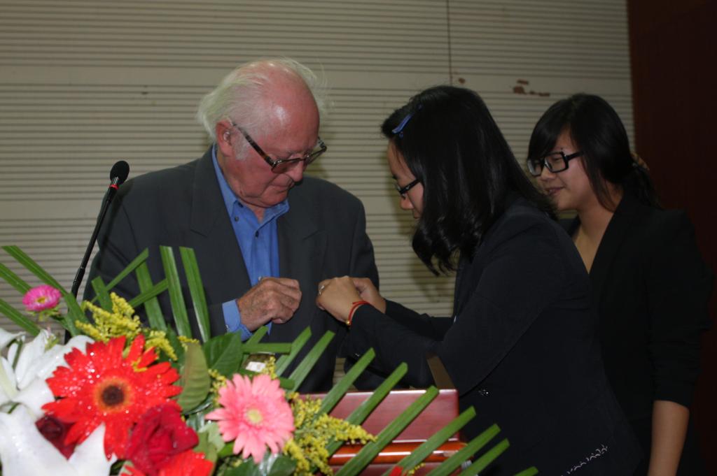 “青马班”学员为麦克莱伦教授佩戴上“青马班”徽章