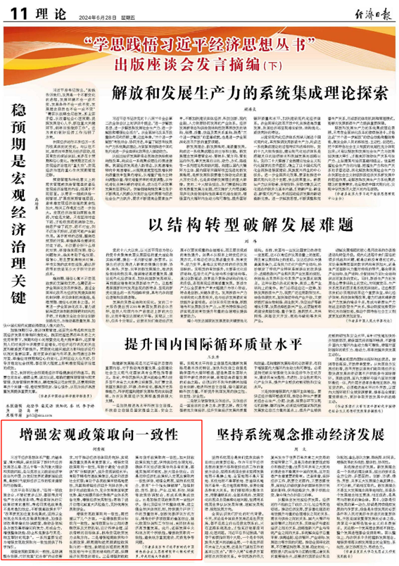 习近平总书记指出,“任何一项政策出台,不管初衷多么好,都要考虑可能产生的负面影响,考虑实际执行同政策初衷的差别,考虑同其他政策是不是有叠加效应,不断提高政策水平”“改革要更加注重系统集成,坚持以全局观念和系统思维谋划推进,加强各项改革举措的协调配套,推动各领域各方面改革举措同向发力、形成合力,增强整体效能,防止和克服各行其是、相互掣肘的现象”。一系列重要论述为增强宏观政策取向一致性提供了科学指引。