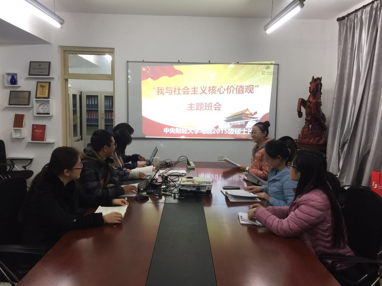 为深入贯彻中央及北京市委关于培育与践行社会主义核心价值观的要求,认真落实《北京市高校培育和践行社会主义核心价值观实施意见》,大力推动社会主义核心价值观入脑入心、落地生根,我院积极响应北京市委教工委和学校、学院的通知与要求,于2016年11月19日开展了“我与社会主义核心价值观”主题班会活动,15级硕士班同学积极配合并参与讨论。