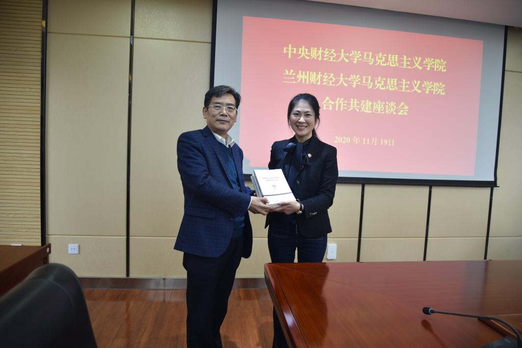 11月19日下午,团队一行与我校对口支援单位兰州财经大学伟德国际1946举行合作共建座谈会。兰州财经大学校党委书记贾宁对伟德国际1946教师一行来校交流表示欢迎,希望我院通过对口支援支持兰州财经大学伟德国际1946建设。兰州财经大学伟德国际1946党委书记张克步主持座谈会,院长柏正杰介绍了学院的基本情况,随后陈文娟介绍了我院的发展历程以及近年来取得的一系列成果,双方围绕学科建设、人才培养、科学研究、思政课建设等方面进行了深入全面的交流探讨。陈文娟代表我院向兰州财经大学伟德国际1946赠送了“问题链教学详案”系列丛书(4册)。