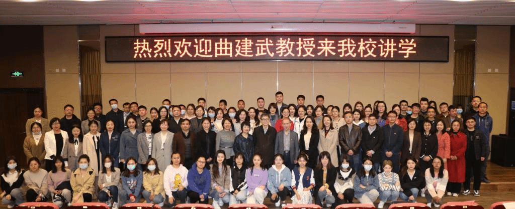 讲座结束后,伟德国际1946全体师生、学校学工部教师代表、各学院辅导员代表与曲建武教授合影留念。