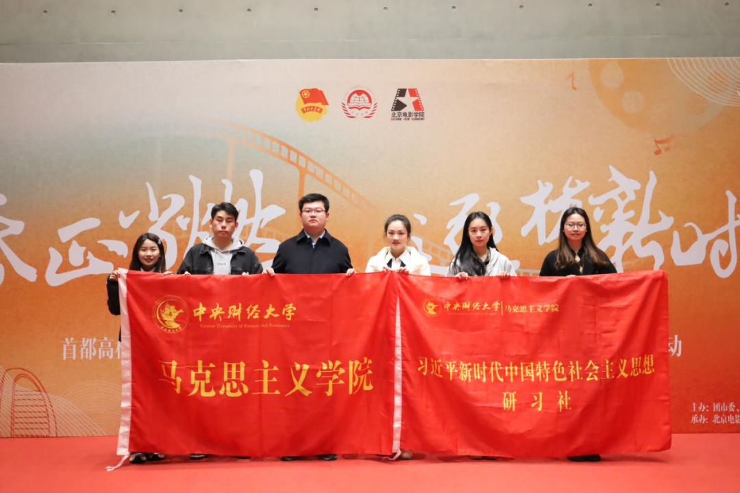 2024年11月10日,“青春正当燃 逐梦新时代”首都高校学生社团展演暨 2024 年首都高校“学生最喜爱的社团”交流展示活动在北京电影学院(怀柔校区)举行,习近平新时代中国特色社会主义思想研习社指导教师带领社团骨干代表参加颁奖活动。