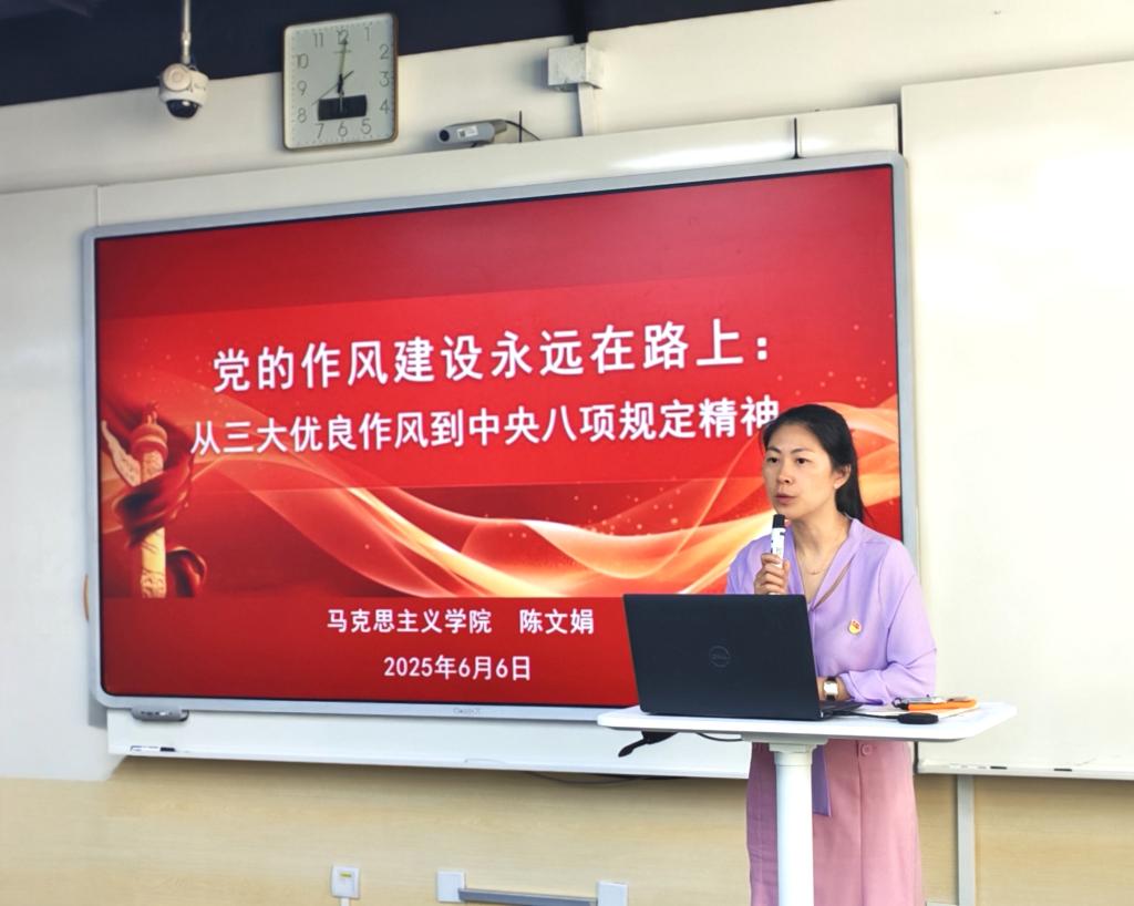 为深入学习贯彻习近平新时代中国特色社会主义思想,进一步筑牢思想根基,强化预备党员与入党积极分子的责任担当,6月6日,伟德国际1946党委书记陈文娟面向学院全体研究生积极分子、预备党员,讲授了一堂以“党的作风建设永远在路上:从三大优良作风到中央八项规定精神”为主题的党课。
