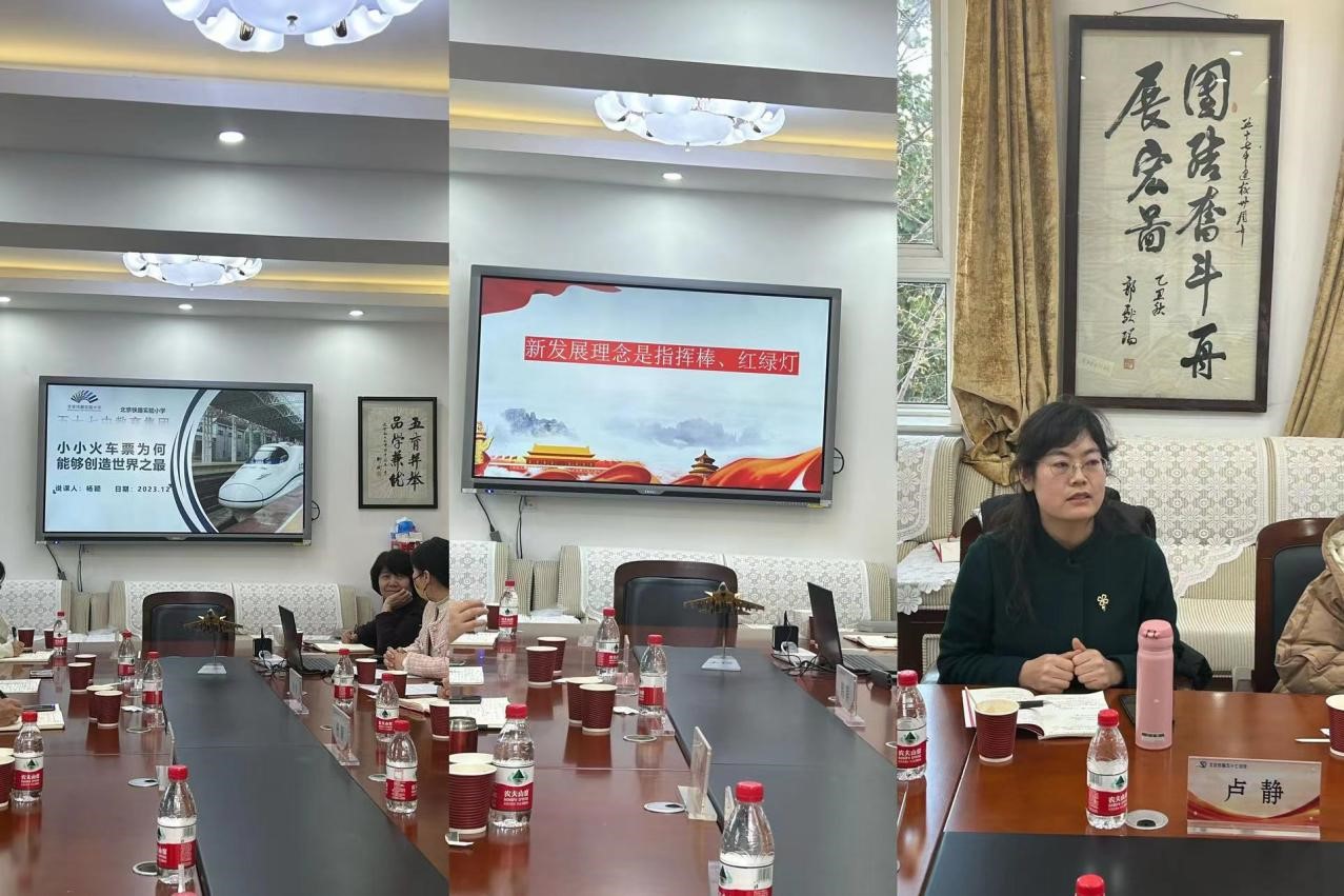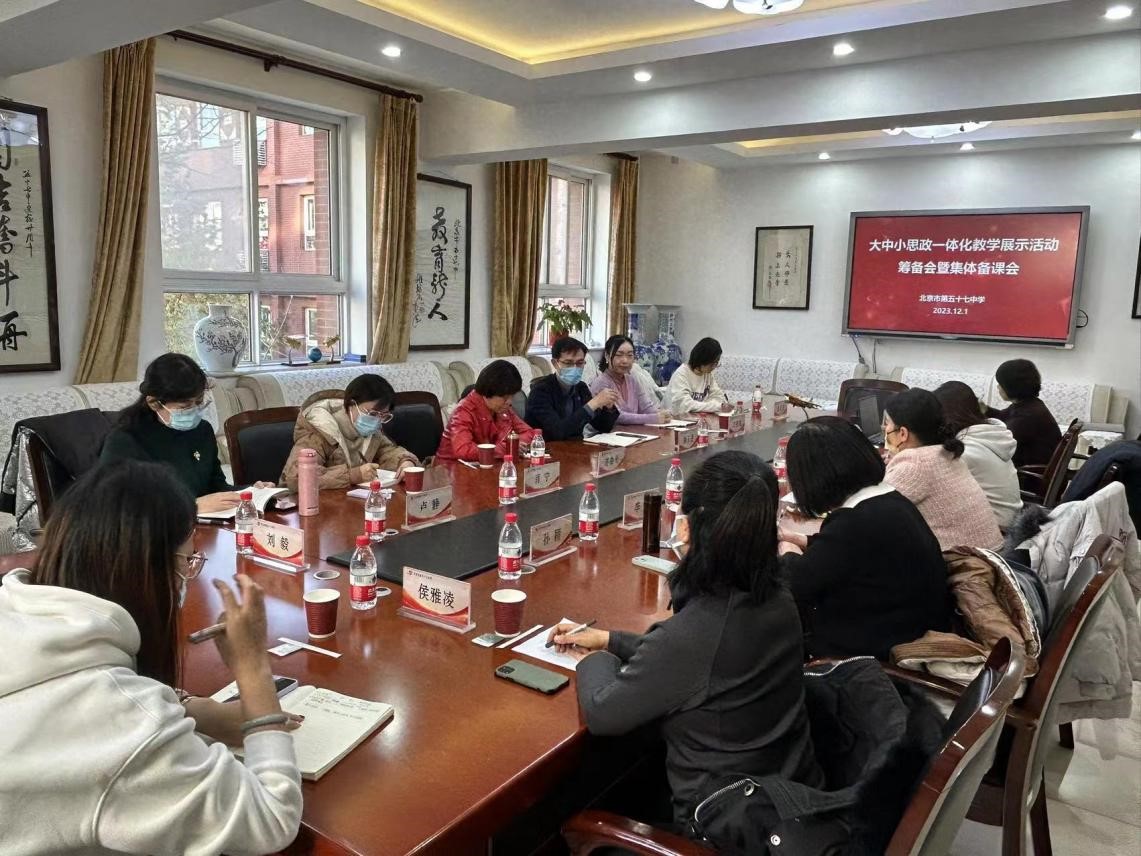 为统筹推进大中小思政课一体化建设,切实发挥思政课立德树人关键课程作用,全面增强思政育人效果。12月1日下午,我院赴北京市五十七中与北京交通大学附属中学、北京市五十七中、中国农业科学院附属小学和北京市铁路实验小学共同开展大中小思政课一体化教学展示活动暨集体备课会。我院谢玉进副院长、形势与政策教研室主任刘亚琼、思政道德与法治教研室肖宁等出席会议。会议由谢玉进副院长主持。